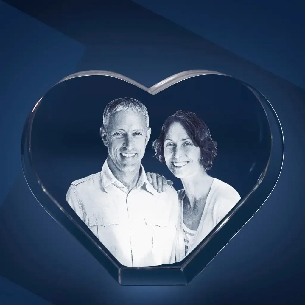 Cœur en Verre XL avec Gravure Laser 3D - Cadeau Émotionnel et Unique
