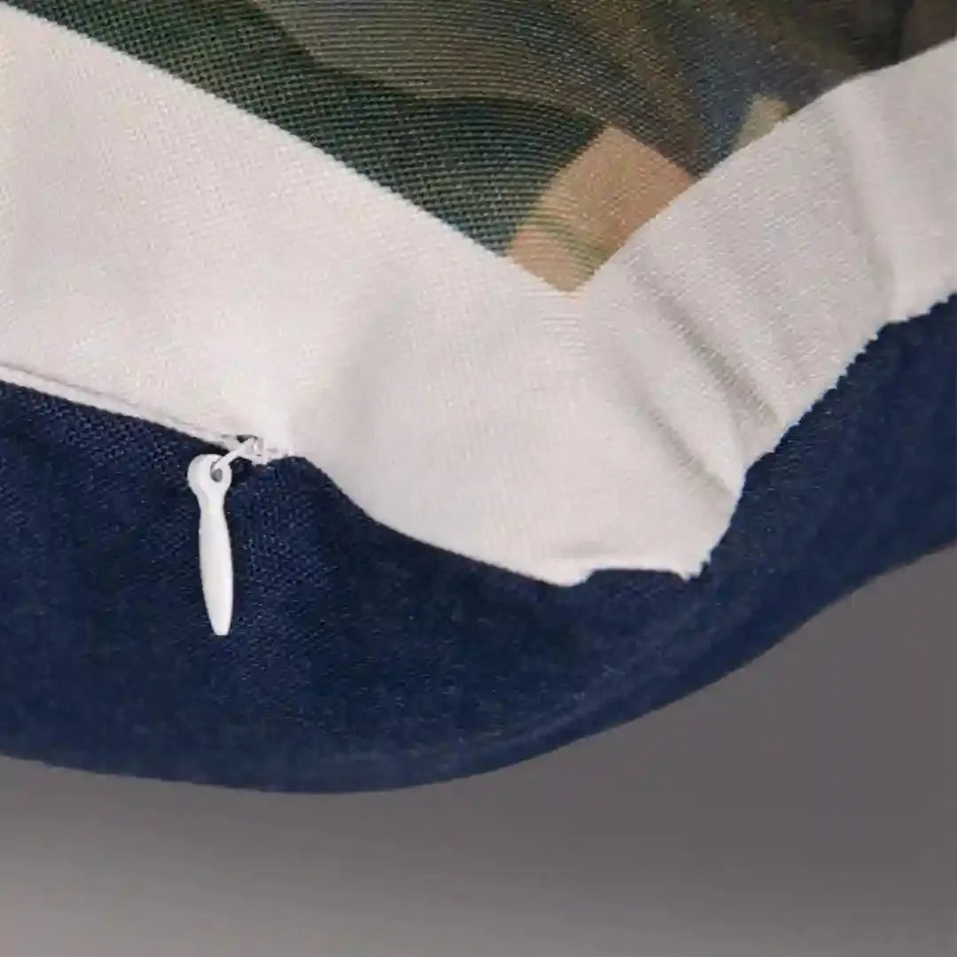 Le coussin bleu nuit se distingue par son contraste raffiné :