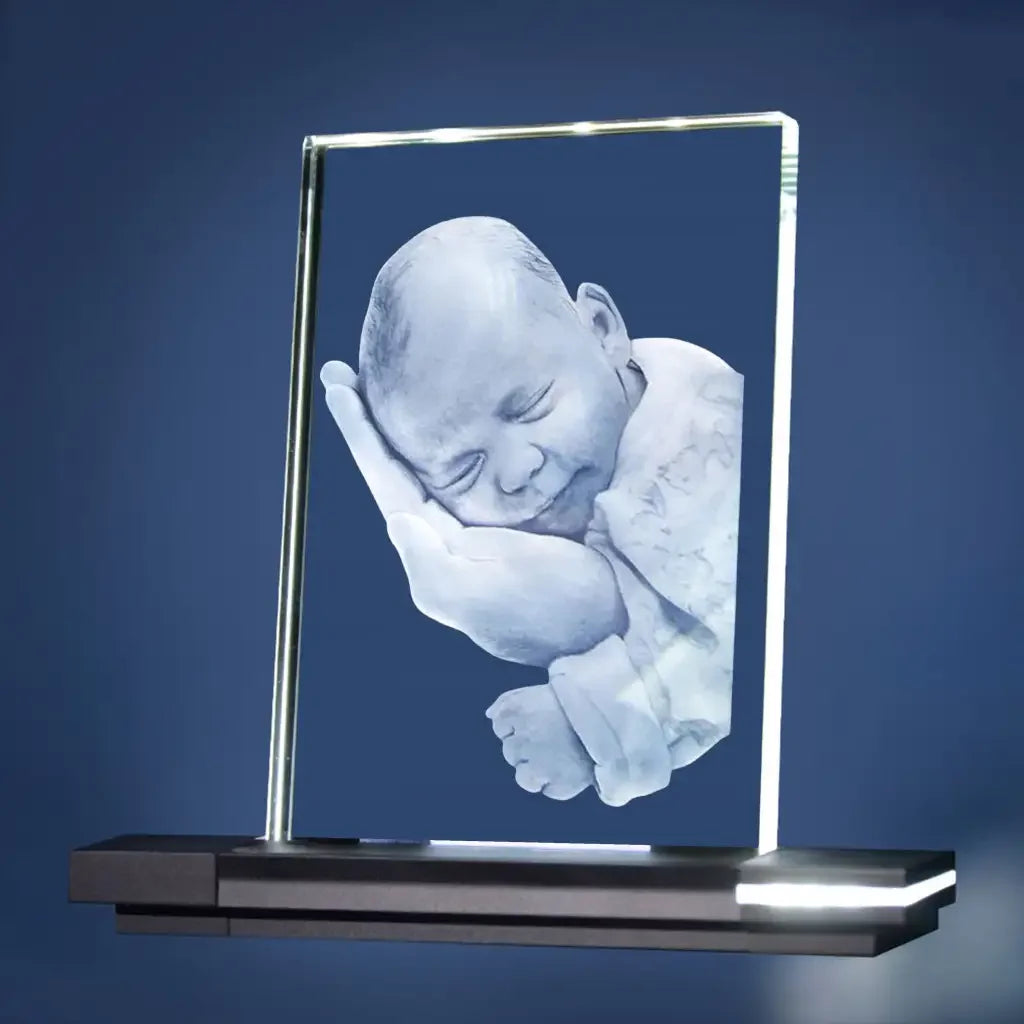📏 Gravure interne – Photo sculptée à l’intérieur du verre grâce au laser haute intensité.